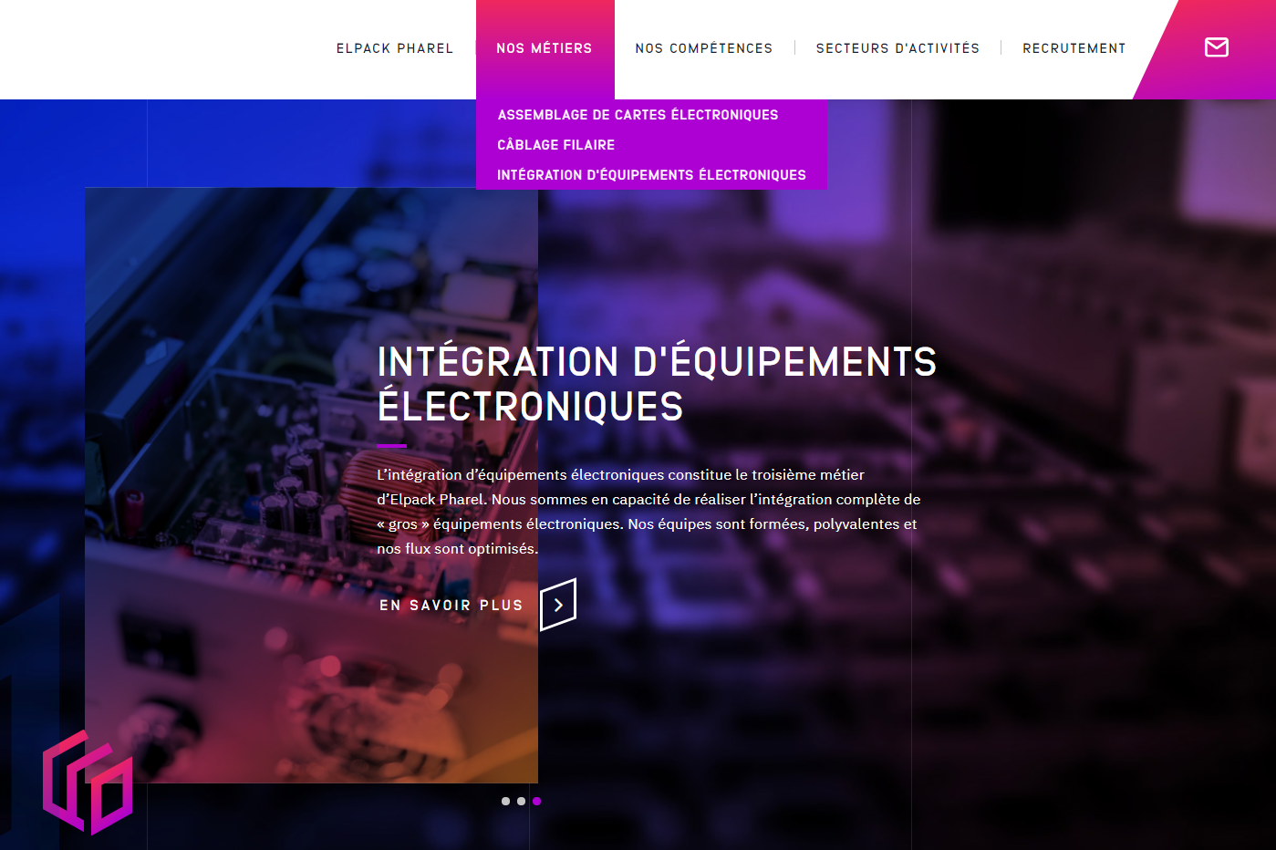 Le site d’Elpack Pharel est un site corporate. Il a pour objectif de présenter le sous traitant électronique et d'informer l’internaute des actualités et des offres de recrutement.